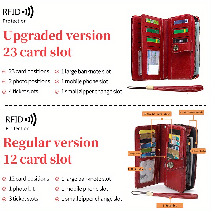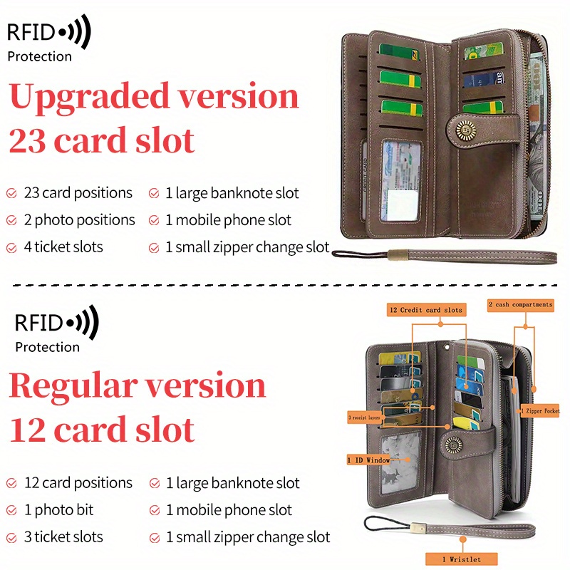 Combining classic vintage style with modern RFID protection, this long wallet offers multiple card slots, a secure zipper coin pouch, and a wristband—perfect for organized storage and everyday use